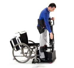 Standing wheelchair-like devices that can move while standing up, usually cannot lift their users to a fully upright position. In contrast, Tek Robotic Mobilization Device holds the user in an upright position while leaving his hands free.